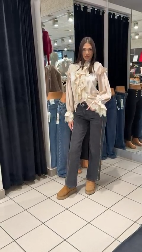 Cămașă bej cu volănașe