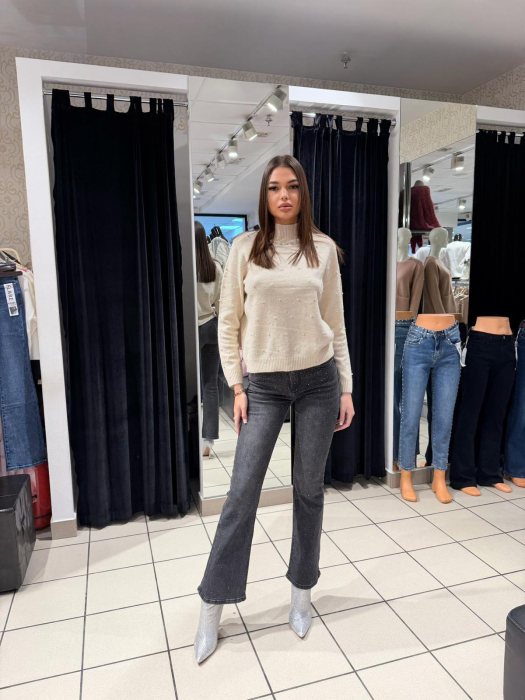 Pulover pe gât cu ștrasuri
